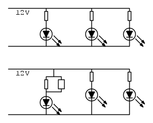 Gli schemi dell'ultimo post e e del [28] sono perfettamente uguali e rappresentano due led con relative resistenze di limitazione, messi in parallelo.