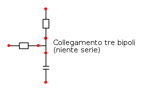 Due bipoli sono in serie tra loro se uno e uno solo dei puntini rossi di uno è collegato con uno e uno solo dei puntini rossi dell'altro e in questo collegamento non è collegato nessun altro bipolo.