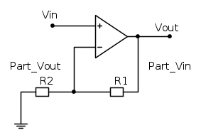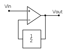 Quindi se applico 1V in ingresso ottengo 2V in uscita, perché il partitore così calcolato divide per 2.