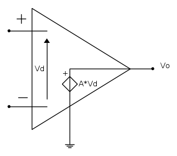 Questo tipo di amplificatore viene detto "differenziale" perché amplifica la differenza tra la tensione presente sul morsetto + e quella sul morsetto -, considerandole riferite a massa.
