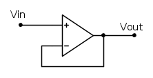 Quell'operazionale, collegato in quel modo, si chiama inseguitore di tensione.