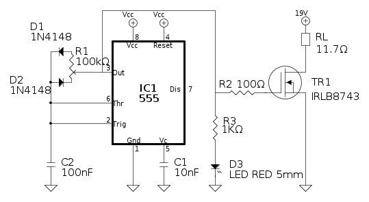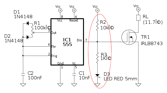 PietroBaima ha scritto:Quando il pin 7 "si apre" il LED vede una resistenza pari a 10k\Omega+1k\Omega, troppo alta perché possa accendersi ad una luminosità soddisfacente (e poi la luminosità è anche soggetta al PWM)