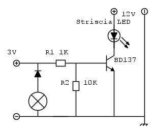 sidro007 ha scritto:.. con un transistor che piloti l'accensione della striscia led a 12 V .....
