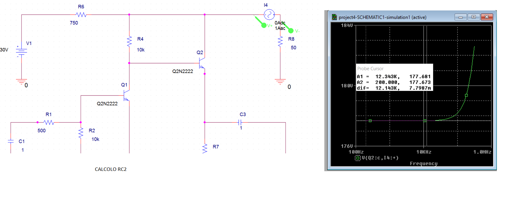 2) Resistenza vista ai capi di C4 cioè RC4=177.68 Ohm