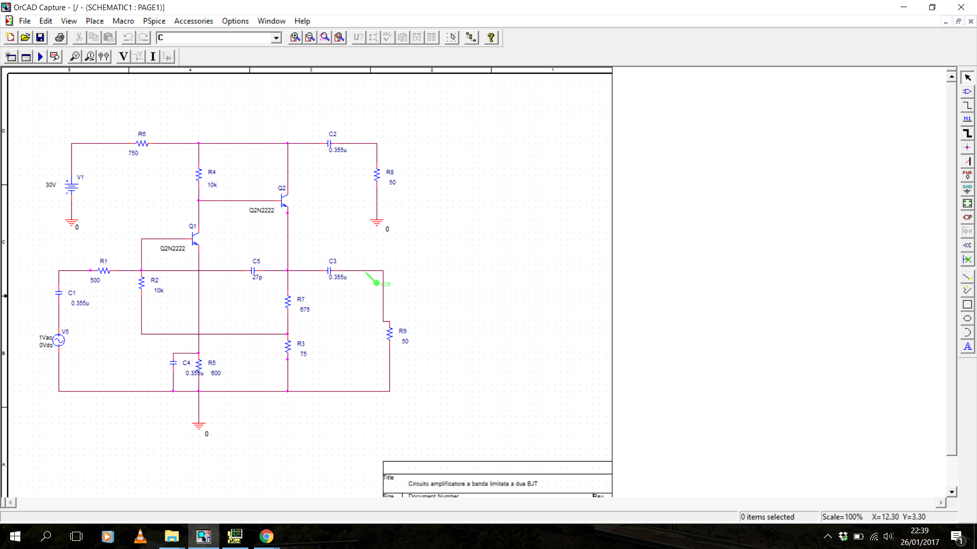 Circuito amplificatore a Banda limitata a due BJT