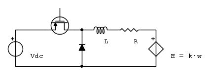 Il classico motorino a magneti permanenti possiamo considerarlo in primissima approssimazione come un generatore di f.e.m. continua proporzionale alla velocità di rotazione, in serie con la resistenza e la induttanza quest'ultima intesa come induttanza di sola dispersione fra statore e rotore (quindi in qualche modo "esterna").