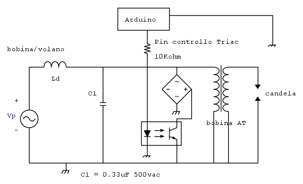 Cioè il triac si apre (spegne) solo quando la tensione (e corrente) ai suoi capi è zero - quindi nessuna extratensione di apertura da trasferire alla bobina elevatrice e quindi nessuna scintilla. #-o