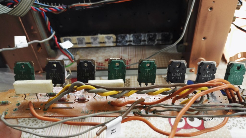 Data tensione i fusibili non sono saltati... L'ampli si è acceso, ovviamente con la spia della "protezione" accesa! Un paio di resistenze hanno fumato ma sapevo che poteva succedere, erano di basso potenza ma avevo solo quelle, ora le cambio.