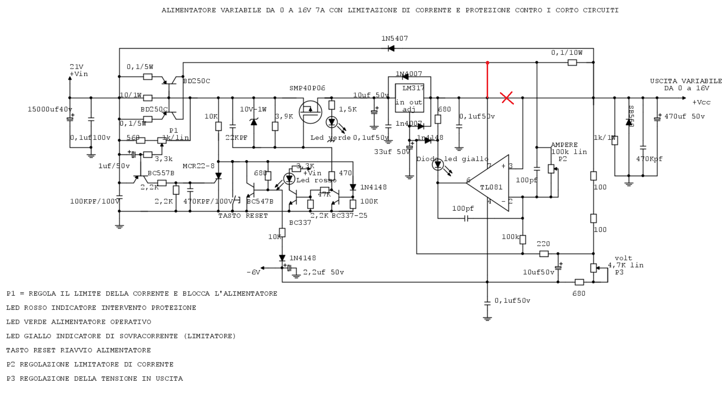 Uso dei diodi di protezione su alimentatore con lm317