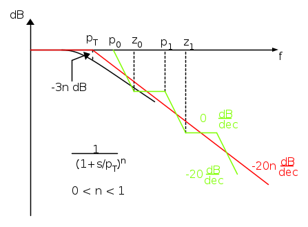 Un'idea abbastanza immediata è quella di assumere un errore costante fra la retta a pendenza -20n\frac{\text{dB}}{\text{dec}} e la sua approssimazione a zig-zag con pendenze -20\frac{\text{dB}}{\text{dec}} e 0\frac{\text{dB}}{\text{dec}} .