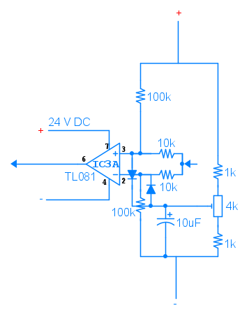 Scherzi a parte, ieri ho ritrovato il mio schemario di gioventù e quello di un mio amico scomparso. Ci sono parecchi schemini interessanti, utili da proporre su EY, anche se adesso non ho tempo. Però una prova ho voluto farla. Ho applicato all’alimentatore uno schema di comparatore a finestra composto da un solo operazionale LM724 che ho sostituito con un TL081. Funziona quasi bene, nel senso che le soglie di commutazione si regolano bene ma non sono riuscito a gestire l’isteresi. In realtà un’isteresi c’era ma superava di poco il mezzo volt. Forse avrei dovuto lasciare il LM724.