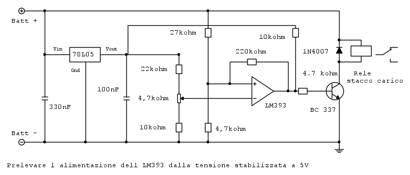 Dunque, in questo thread direi di analizzare solo il circuito di stacco del carico per batteria al piombo 12V e relè.