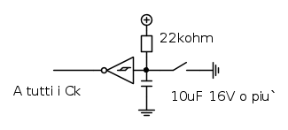 In basso sempre sull'estrema sinistra abbiamo invece una resistenza e un condensatore collegati a tutti i Ck