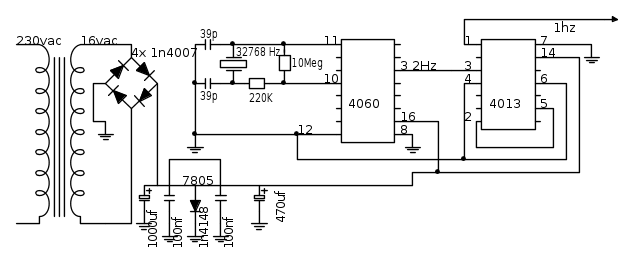 Un suggerimento per gli schemi. Quando per gli integrati "complicati", come il 4060, usi semplicemente il rettangolo con i piedini, metti i piedini per ordine, cioe` dall'1 al 16, in modo che la posizione del collegamento rappresenti anche effettivamente la posizione del piedino, e aggiungi dentro al rettangolo il nome del segnale. Il numero del piedino a quel punto non serve piu`, ma se lo si mette niente di male.