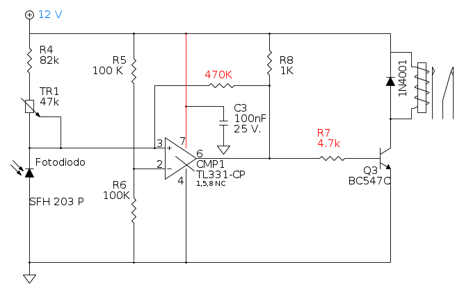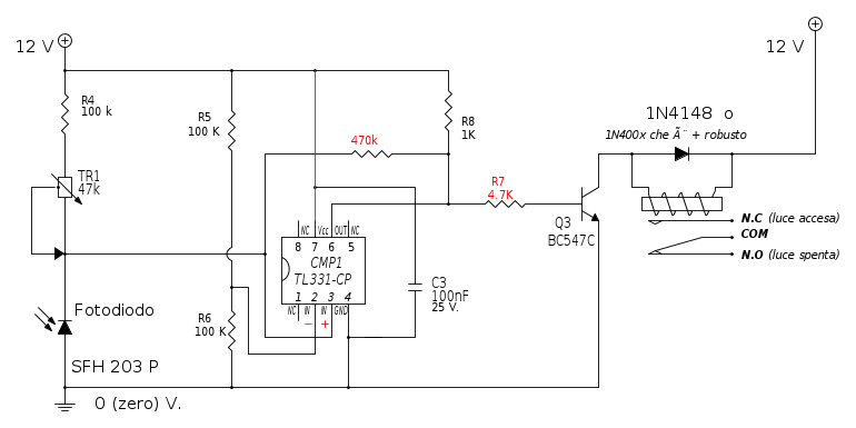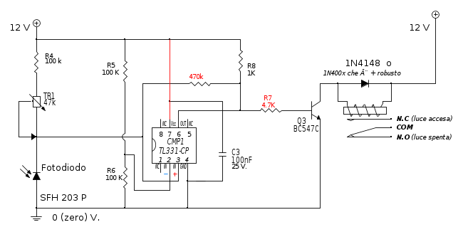 Crepuscolare con fotodiodo e operazionale