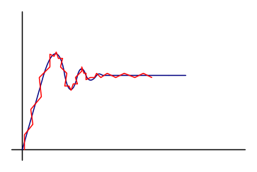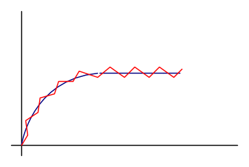 Quindi se avessi poli CC, avrò che la tensione di uscita, si stabilizza nel tempo con un andamento simile a questo: