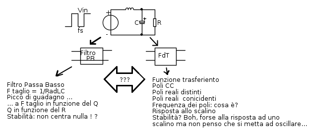 O meglio, cio che non mi fa ancora dormire è questo: ma porcaccia la miseria... questa benedetta cella LC la posso vedere come un filtro LC, che è un semplice passa basso con un frequenza di taglio 1/\sqrt {LC}, ma posso anche vederlo come una scatola che ha una funzione di trasferimento che ha come "parametri" questi benedetti poli. E quindi? Che legame c'è?