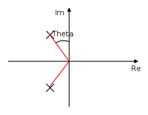 dove il modulo dei poli (indicato con una linea rossa) è la pulsazione caratteristica (la \omega _n per intenderci) e il coefficiente di smorzamento è definito come