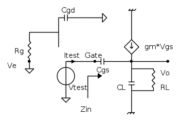 Ho provato a ricavarla con i potenziali ai nodi come è stato fatto in aula, ma se riesco a trovare la Vo/Vi' senza la Rg, non c'è verso di farmi quadrare la Zin che mi serve per il partitore di tensione che andrà moltiplicato per la Vo/Vin' senza Rg (come fatto in aula). La Vin' è in corrispondenza del gate prima delle due capacità (nodo "Gate" nello schema, quando il circuito non è separato)