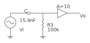 In realtà questo schema lo puoi anche vedere semlicemente come la cascata tra un passa-alto e un amplificatore con guadagno 10: