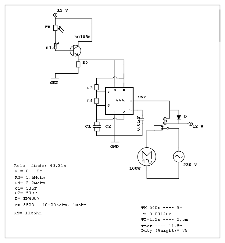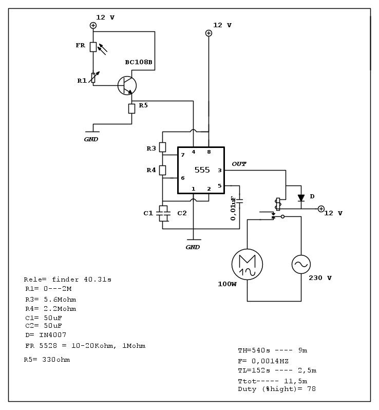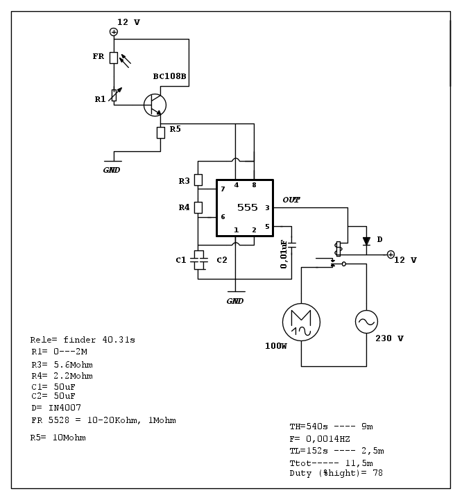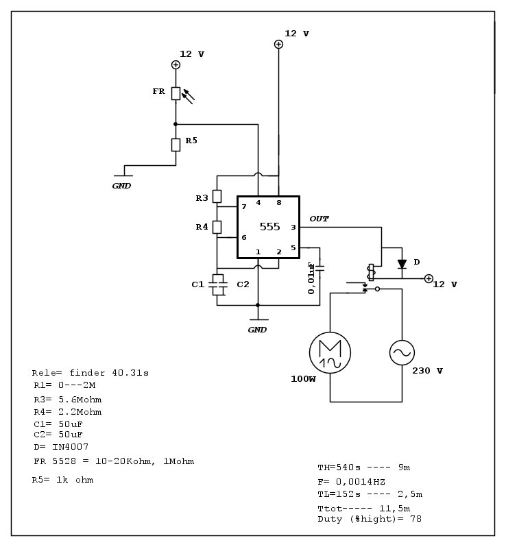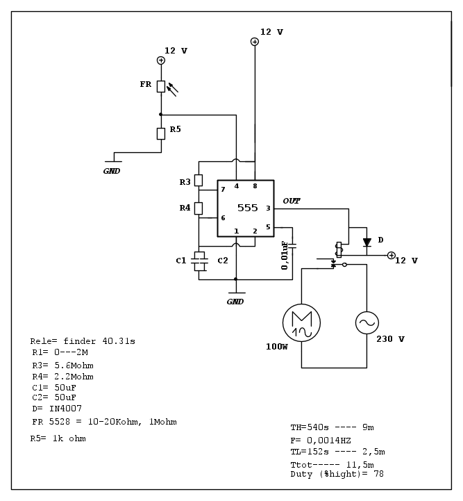 “””””Inoltre, con un 555 CMOS si potrebbe mettere la fotoresistenza fra il pin 4 e VDD e mettere 100k\Omega fra pin 4 e GND, come giustamente hai osservato.”””””