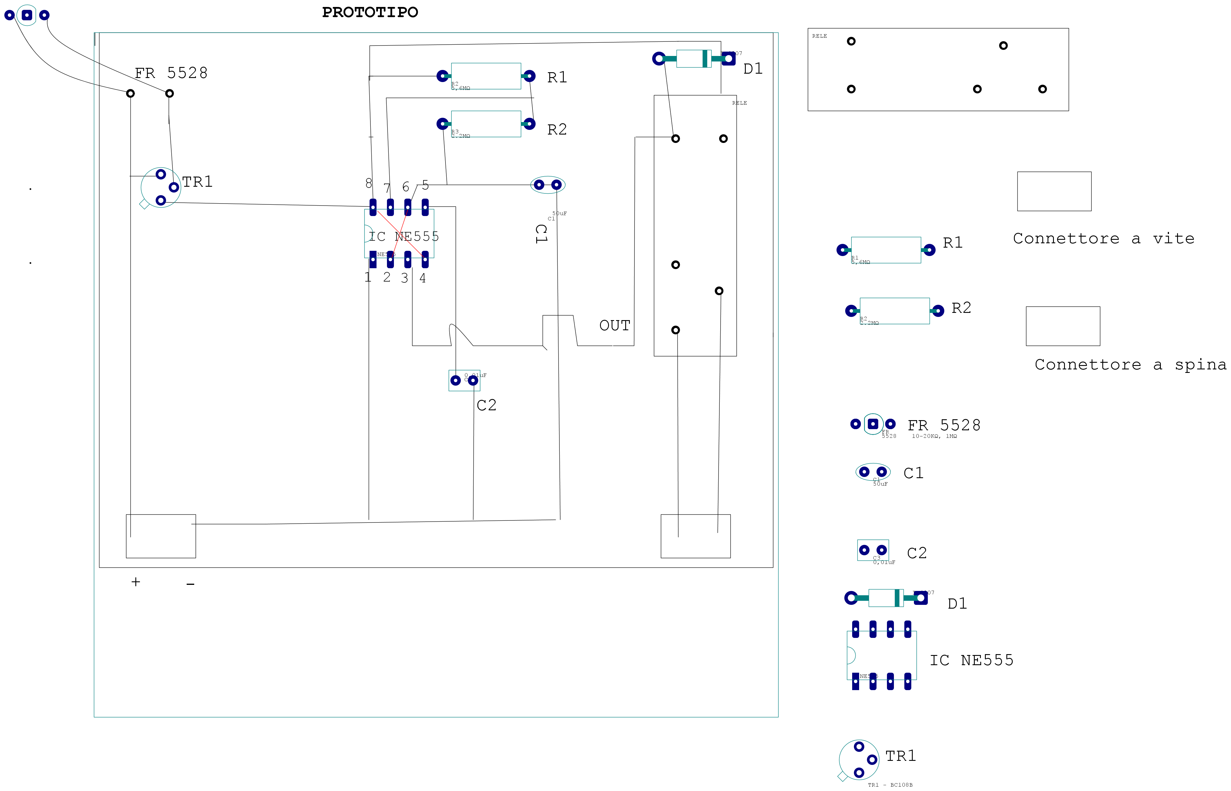 :-) Ti accontento subito... il prototipo è ok tranne per il fatto che hai sprecato spazio e basetta inutilmente posizionando i componenti a chilometri l'uno dall'altro :mrgreen: potevi tranquilamente compattare il tutto ma sarà per la prossima volta (in generale è sempre bene che i collegamenti risultino il più corti possibile ;-) ); riguardo alle temporizzazioni lunghe col NE555, addirittura di ore*, se lo hai sentito hai sentito una str... amberia :mrgreen: (non ti ho risposto prima perché stavo cercando per linkartelo un vecchio thread in cui avevo chiesto delucidazioni in proposito ma non sono riuscito a ritrovarlo per cui vado a memoria), molto in soldoni per temporizzazioni lunghe occorrono condensatori di elevata capacità nella rete RC, caricare e scaricare condensatori di elevata capacità comporta lo scorrere di correnti di elevata intensità nel circuito interno all'integrato (in particolare nel transistor "preposto a tale scopo") il che lo stresserebbe provocandone più o meno prematuramente la morte. O_/