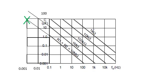 Il produttore presenta il seguente grafico per Resistenza, Capacita e ferequenza in modalita astabile