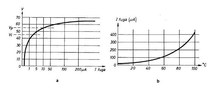 Rimane pero aperta il discorso della Corrente di Fuga. Da alcuni datasheet mi sembra che in condizioni normali sia dell’ordine di qualche unità di uA. Ho trovato po in rete del materiale che questi grafici qualitativi che indicano l’andamento della corrente di fuga..
