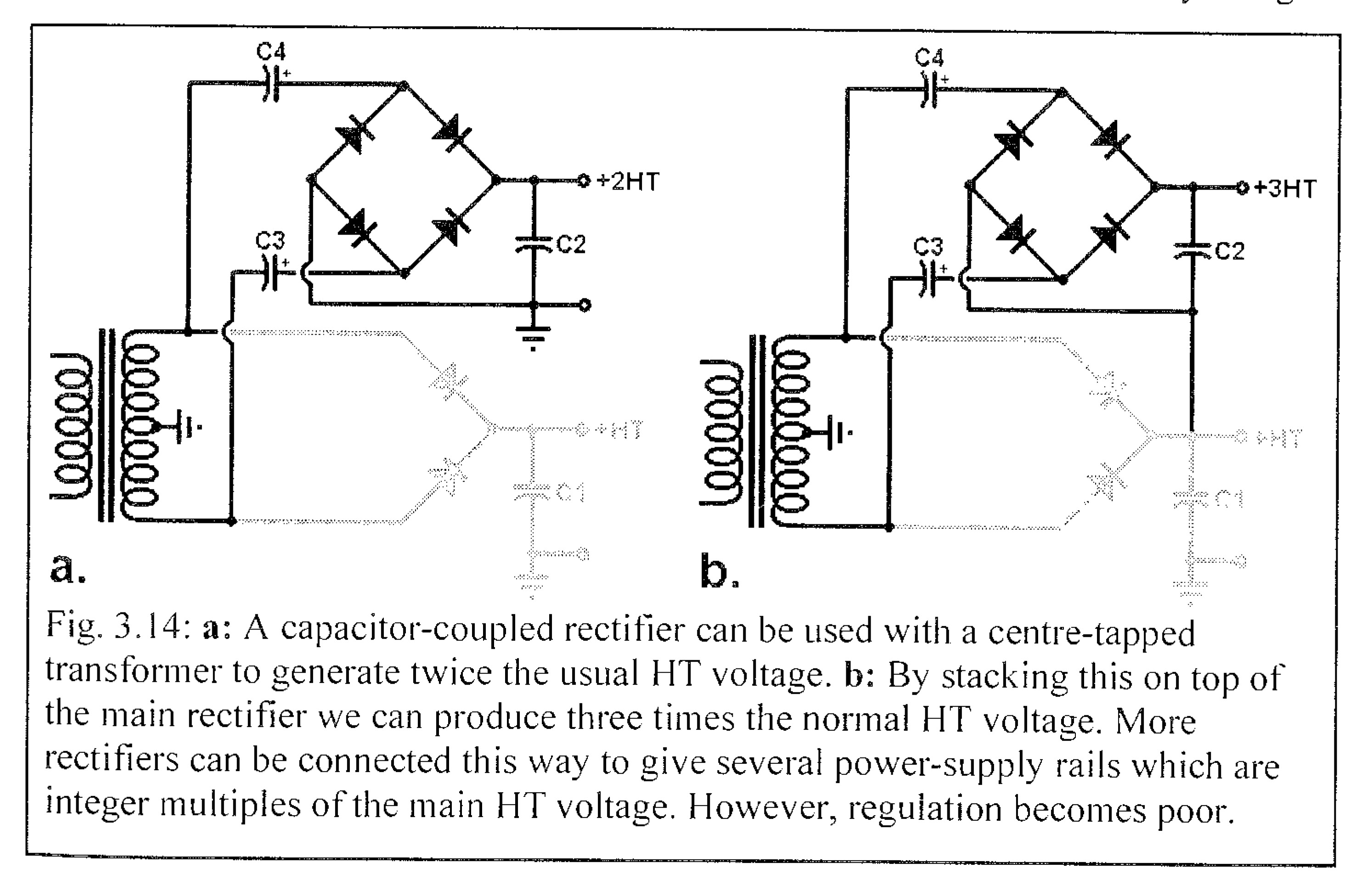 Una cosa, il ponte accoppiato con i condensatori non dovrebbe restituire una tensione duplicata ?