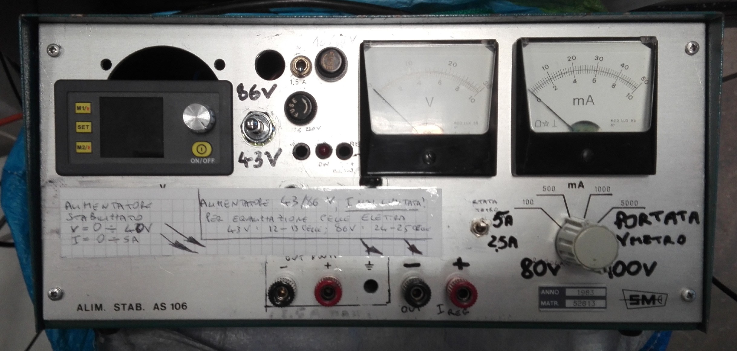 Ecco come ho integrato il nuovo giocattolino in un alimentatore anni 70 che aveva già subito vari rimaneggiamenti...