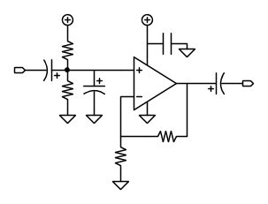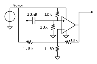 si applica metà della tensione di alimentazione all'ingresso non invertente tramite un partitore 1:1 "livellato" però tramite un condensatore elettrolitico (un centinaio di uF p. es.);