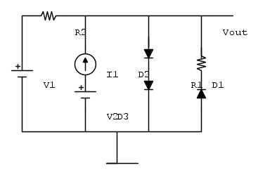 -- per V1 che varia tra 0.5 ed 5 allora Vout è fissa ad o.7
