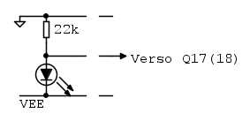 Nel tuo caso, essendo VEE di circa -33V e il resistore di 22kohm, a conti fatti, nel led scorrono circa 15mA.