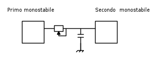 Tra il primo e il secondo monostabile, dicevo, c'e' una semplice rete RC.