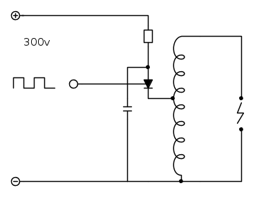 Ora però continua a ronzarmi in testa il fatto che il tiristore rimane chiuso dato che continua a passare la 300v attraverso la resistenza e quindi attraverso il tiristore passando poi per l'avvolgimento...