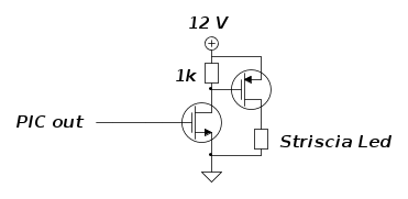 Ricordo che dal PIC esce una PWM a 1kHz che dimma la striscia di LED per impostare il valore di luminosità desiderato.