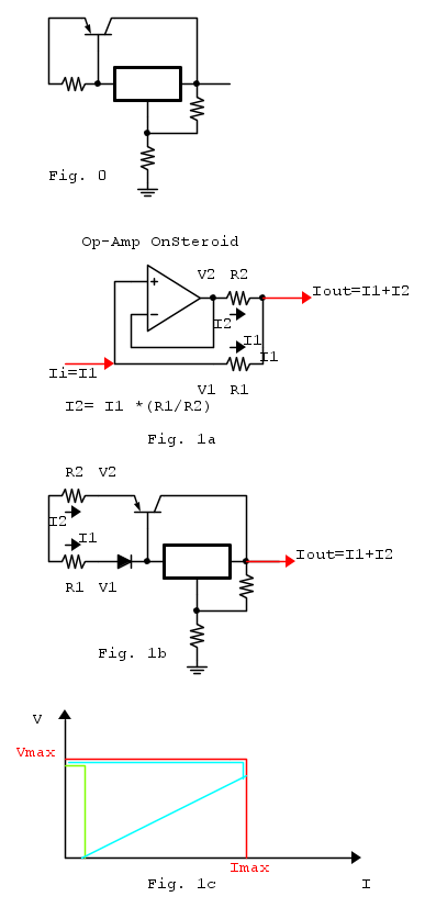 Data una corrente Ii, viene aggiunto un Op-Amp capace di erogare la corrente richiesta dal carico (Iout >> Ii) configurato a guadagno unitario e con in serie la resistenza R2. La corrente erogata dall'Op-Amp e' in rapporto di R1 e R2.