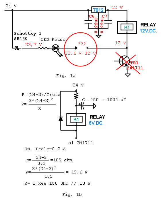 Nella Fig. 1b e' riportato un "vecchio trucco" per velocizzare la "chiusura" e "apertura" di un rele' (il 7812 viene eliminato e sostituito da R e C).