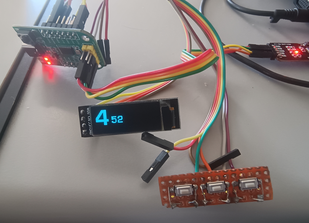 Con l'altro pulsante (long press) si entra in modalità impostazione del timer e con lo short press si impostano i minuti del timer. con un altro long press si esce dalla modalità impostazione e le stessei vengono salvate sulla flash, in modo che alla prossima accensione i valori impostati non vengano persi.