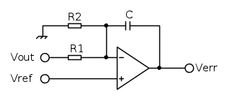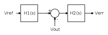 V_{Err}(s)=\left[\frac{R_1+R_2}{R_2}V_{ref}-V_{out}\right]\frac{1}{sCR_1}=\left[H_1(s)V_{ref}-V_{out}\right] H_2(s)