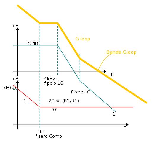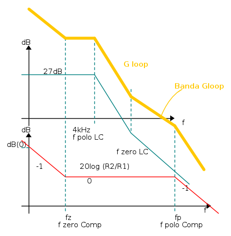 Tieni presente che quando cambia la tensione di ingresso al convertitore (mi pare che il valore nominale fosse 12V) cambia il guadagno dello stadio di potenza e potresti andare in instabilita` se il guadagno scende troppo e la frequenza di crossover va in zona dove la fase e` dalle parti di -180 gradi o peggio.