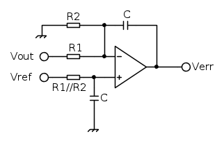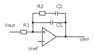 V_{Err}(s)=\frac{1+sC(R_1//R_2)}{sC(R_1//R_2)}V_{ref}-\frac{1}{sCR_1}V_{out}=\left[H_1(s)V_{ref}-V_{out}\right] H_2(s)