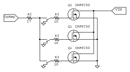 Il circuito è bello perché permette di testare alimentatori con grandi carichi ripartendo la corrente sui vari mosfet ma quella volta che devo testare una piccola batteria o un piccolo alimentatore farei fatica ad assorbire piccoli carichi quindi...