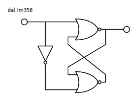 per lo stadio seguente ho pensato a questo latch ma l'uscita è sempre 1 , diventa 0 solo quando l' ingresso è 1 e quindi non va bene.