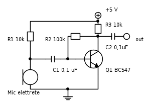 come preamplficatore microfonico userei questo schema gia usato, cambiando se necessario la tensione di alimentazione: