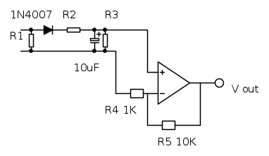 Suggerirei di mettere dopo il preamplificatore un circuito rivelatore