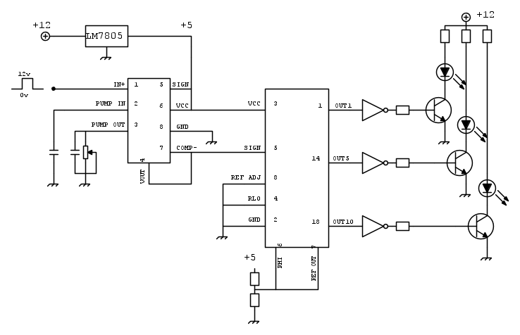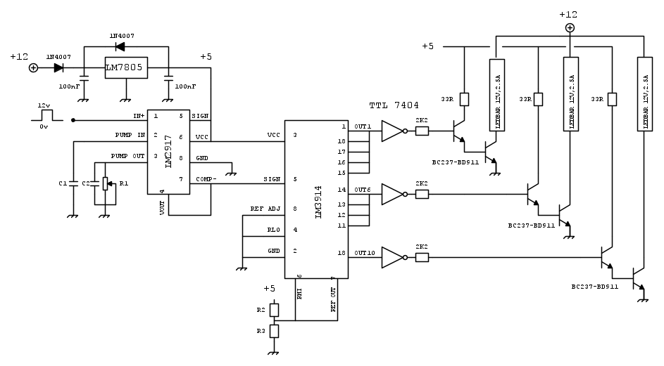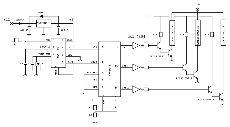 Manca ancora la parte di dimensionamento ma intanto provate a dare un occhio a questo e vedere cio che non va bene. poi ho dei dubbi per quanto riguarda la tensione di riferimento del 3914 creata dal partitore sui pin 6 7 e sul dimensionamento di resistenza e condensatori per la taratura del 2971.