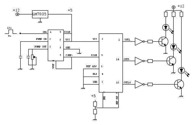 Fammi capire il tuo scopo prima di andare avanti a vedere che tipo di integrati sono ecc ecc... tu devi accendere delle barre di led quando il motore gira sopra, o sotto, un determinato valore giusto?
