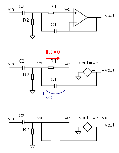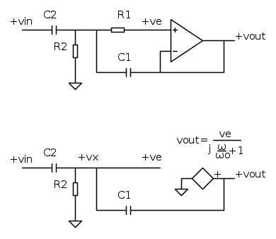 Sto seguendo un laboratorio (praticamente) di elettronica (che mi piace tantissimo), e mi è stato chiesto di realizzare un circuito con un amplificatore operazionale (in particolare il uA741) che faccia da AC follower, cioè praticamente si tratta di un inseguitore che però lascia passare solo le alte frequenze. Ecco la foto di quello che dovrebbe essere: