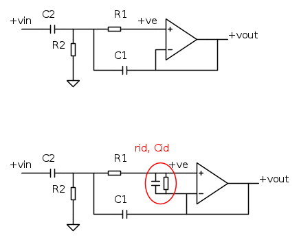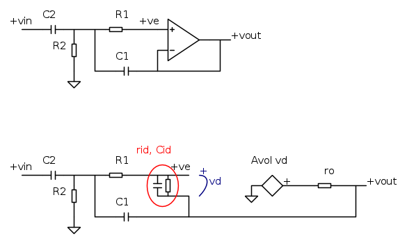 1) non riesco a trovare la funzione di trasferimento. Qualcuno mi saprebbe aiutare? Ci riesco solo modellizzandolo come un passa alto+un passa basso (infatti credo esca un passa banda, visto che il uA741 regge al massimo 700kHz), ma non riesco a capire che senso abbia C1 (R1 credo serve per non far entrare corrente nell'opamp, visto che, non essendo ideale, non ha impedenza d'ingresso davvero infinita);
